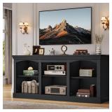 - Create a Captivating Atmosphere: This farmhouse TV stand, suits for screens up to 80 inches, showcases a sleek black finish that adds a touch of timeless retro elegance to your living space, making it the ideal focal point for cozy movie nights or lively gaming sessions