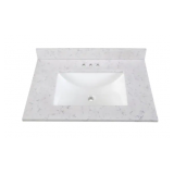 - And its soft-close 1-door cabinet provides additional storage space on the left as well as easy access to your plumbing. Durably built with a laminate furniture-board construction, this bathroom vanity includes a 1-piece silver ash cultured marble vanity top with an integrated rectangular white sink for a granite-like and seamless look.
