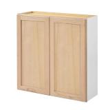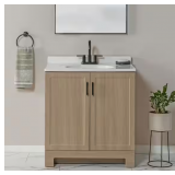- The Oakley 30.5 in. bathroom vanity in beige oak provides style and storage for small bathrooms and powder rooms. Constructed of engineered wood with a medium-toned woodgrain laminate finish, this durably built vanity features a 2-door cabinet with an interior height-adjustable shelf for customizable storage space and easy access to your plumbing.