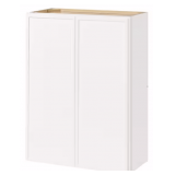 - This Shaker-style bathroom vanity features a full-overlay 2-door cabinet that's complemented by sleek matte black hardware.