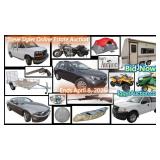 Featured Items: 2018 Subaru Outback (8k miles), 2007 Ford F-150 XL Pickup (38k), 2013 Ford Mustang (71k), 2018 GMC Savana Van (91k), Honda Motorcycles including a 2005 Shadow & 1988 Goldwing, 2019 Can-Am Outlander ATV 32 miles, 2005 Toyota Echo (76k), 1989 Jayco Trailer Camper.
