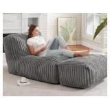 Big Bean Bag Lounger Chair for Adults. Memory Foam Filled Sofa for Living Room, Bedroom, or Balcony. Grey