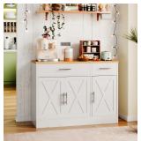 Ample Storage: This 42.5-inch wide sideboard features two drawers for cutlery and three doors concealing spacious storage for various kitchen and dining essentials, including wine bottles and pots.