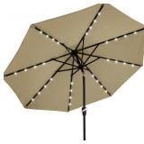 MASTERCANOPY Patio 11ft Umbrella with 32 Solar LED Lights 8 Ribs Beige
