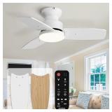 30 Inch Ceiling Fans with Lights and Remote, Bedroom Living Room Office, Flush Mount, 3CCT Dimmable, Dual Color 3 Blades 6 Speed Reversible Quiet DC Motor, White/Wood Grain