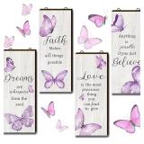 Geelin 4 Pcs Butterfly Wall Decor Butterfly Bathroom Decor Dreams Faith Love Believe Wall Decoration Elegant Hanging Inspirational Rustic Art Accessories(10 x 4 Inch,Purple)