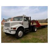 1993 International 4900 – 2 Ton Truck, DT 466 IH diesel, AT, air brakes, 10 ft. flatbed body with gooseneck hitch. 55-gallon diesel fuel tank with hand pump 2006 28 ft. PJ Tri-axle Gooseneck Trailer