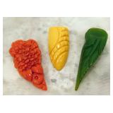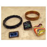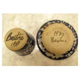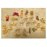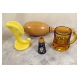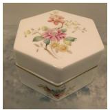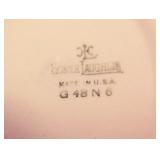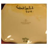 | 1. The official Book of Bird and Flowers Of Our Fifty States - 1982 - First Day Issues Cover Collection in Mint Condition - Comes in protective sleeves in the book. Priceless. 2. The 1946 Trudy Doll is a rare one to fine - Three Different Faces - Sleepy, Weepy, Smily - An Elsie Gilbert Creation - In good condition. 3. Vintage - child's Wooden Rocking Chair - Seat is 11 inch H x 26 1/4 inch H over all x 16 inch from arm rest to arm rest - seat is 13 inch in depth. 4. Vintage - Delft Ashtray from Holland - WORKS - Top spins ashes down. Top is removable to dup ashes - cool Piece 4 1/2 inch H x 4 1/2 in Diameter - In very good condition. 5. R. S. Germany - Green Stamped - Heavy Gold Trim Scallop edge - in very good condition - 6 inch L x 5 1/2 W x 2 1/2 inch H. FYI: RS Germany is part of the wording in marks used by the Tillowitz, Germany, factory of Reinhold Schlegelmilch from 1914 until about 1945. The porcelain was sold decorated and undecorated. R.S. Germany Wreath/Star Mark. 1911 - WWII. The mark may be found in blue (underglaze) and green often in combination with other markings. 6. Pink Ribbed Depression Glass Creamer and Open Sugar with Scalloped Edges - Creamer Measures: 4" tall, 4.5" wide from spout to handle, 3" bowl diameter - Sugar Bowl Measures: 3.5" tall, 5.25" wide from handle to handle, 3" bowl diameter 7. ELEGANT vintage 1930s pink Depression Glass - tri-3-footed scallop bowl. Perfect for fruit or as a SMALL centerpiece. Made by Lancaster Glass Company. Scalloped rim. Blank pattern. 3 1/4 inch tall x 6 1/2 inch Diameter. In very good condition. 8. Vintage Etched Pink Ribbed wide mouth Vase with Grape Design. 4 5/8 inch H x 3 3/4 inch in diameter. In very good condition. 9. Vintage - Serving Platter - Homer Laughlin - Made in USA - G48N6 Blue Willow Transfer - 11 3/4 inch x 9 3/4 inch - in good condition. 10. Very nice Royal Doulton - Mystic Dawn - English Fine Bone China H5103 - 1985 - 3 3/4 inch x 4 1/4 inch x 2 3/4 inch Tall - in Mint Condition. 11. Vintage REINHOLD SCHLEGELMILCH - R.S. Silesia - Tillowitz - Germany Lattice Cut Through Design. 7 1/4 inch Diameter 1 1/2 inch H. In very good condition. 12. Vintage REINHOLD SCHLEGELMILCH - R.S. Silesia - Tillowitz Blue Markings. 7 1/2 inch L X 7 inch W x 1 1/2 inch H. In very good condition. 13. Vintage Nippon - Hand painted bowl with Handles 5 7/8 inch x 5 3/8 inch x 1 inch H. Thick Gold Trim on the edges. In very good condition. 14. Scallop Edge Hand Painted Plate - Unmarked - 6 1/4 inch in Diameter 3/4 inch H - in good condition. 15. R.S. Germany Wreath/Star Mark. 1911 - WWII. There are ... The mark may be found in blue (under glaze) and green often in combination with other markings - in very good condition. 16. R.S. Prussia Scallop Edge - 7 3/4 inch Diameter x 1 inch H - in good condition. 17. R.S. Germany - Green Stamp - Open Boat Shape - 9 3/4 inch x 4 1/8 inch x 2 7/8 inch H at the handles. in Good Condition. 18. E. S. German Grovlase E. S. Germany Finger Plate - in Very Good Condition. 19. Fine Bone China Bell - Very Delicate in Very good condition - 3 1/2 inch H x 2 7/8 inch Dia. 20. Vintage Aynsley - Made in England Fine English Bone China - Wild Violets by Aynsley - MINT Condition - 10 5/8 inch Diameter. 21. Vintage Aynsley - Made in England Fine English Bone China - Wild Violets by Aynsley - MINT Condition - 10 5/8 inch Diameter. 22. Vintage Aynsley - Made in England Fine English Bone China - Wild Violets by Aynsley - MINT Condition - 10 5/8 inch Diameter. 23. Blue Willow Design Oriental - Churchill - Made in England - 10 3/8 inch Dia. Mint Condition. 24. Vintage Blue Willow Charger - 603 by Flaie - Japan - 12 inch Dia. in MINT Condtiion 25. Fine Bone China - Germany - in good condition - 5 3/4 inch x 3 1/2 inch. 26. MINT - Table Center Piece Runner 31 inch x 31 inch. Yellow. 27. Table Linen with matching 4 napkins - MINT - 35 inch x 35 inch Table Cover. 28. Vintage Peacock Handles design in Green with Crocket Purse - 9 inch long x 9 inch wide - in very good condition. 29. 64 inch x 48 inch table cloth hand stitched - 2 stain marks - see photos - In very good condition. 30. Large Jewelry Music Box - WORKS! - International Silver Company Attached Lid - 7 3/4 inch x 5 1/2 inch x 3 1/2 inch H - in very good condition. 31. Vintage - Made in England - Souvenir of Columbus Ohio - couple of nicks on the back rim unseen on the front - 8 7/8 inch in Diameter. 32. Happy Little Blue Birds Titan Art Glass - Signed W. Wood 1990 - In very good condition - 5 3/4 inch H. 33. Urn with Lid - Deep Blue Embossed design oriental pheasants sign on bottom - very nice - 5 3/4 inch H. 34. Indigo Blue Bottle with measuring lid cap - Advertisement - date - June 30 1906 - 6 inches in Height. Bottle itself is in very good condition. 35. Hand Painted * inch Tall Perfume Bottle with Glass Stopper - in very good condition. 36. 1950's Vintage Purse - Velvet with Embossed Hand Stitched leafs and beaded work - gold trim with velvet handle - in very good condition - 4 1/8 inch H (not counting the handle) x 4 inch x 5 1/2 inch. 2 pockets inside. 37. Large Beaded Necklace - Hangs 1 inches - total length 28 inches - Tons of beads - very nice - lots of variety. I believe there are 8 strains. 38. 1989 small stoneware - signed - Bestine - Sponge Blue and Gray saucer and cup no handle. 39. Stoneware - Velvet On Bottom - Sponge ware in Blues - 4 3/4 inch H x 4 inches in diameter - in very good condition. 40. Vintage 1930's to 1940's - 3 Bakelite Clips - The Green one is gorgeous and is complete. The other two has issues - see photos. 41. Vintage 1940's Cap Charms - Celluloid Charms: Mobil Oil Pegasus Cracker Jack charm; Gray Hound Dog; Guard Soldier; Santa; Pocket Knife; Indian Chief; baby Lamb (5 complete); Donkey and Elephant; three elephants on an arch; Spotted Scotty Dog; Blue Bow Puppy; Pink Bow Puppy; Rooster; Dog Sitting; Man; Sky Ranger Zeppelin Blimp. Along with 4 broken Baby Lambs. 22 in very good condition. 42. Vintage - meta purse that hooks