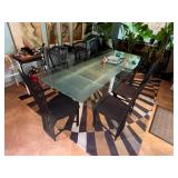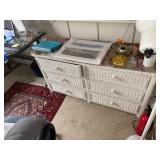 FURNITURE: MCM Mid Century Modern chairs, Gorgeous white leather couches & chair, Stokke gravity designer chair, 9 Pc. glass dining room table set (expandable), Black lacquer china display cabinet, Asian cabinet, Aluminum & glass end tables, Wicker day bed, Wicker trunk, Bookshelves, Wicker bedroom dresser & end table, Wicker coffee table, Wicker patio furniture, Couch, Sofa, Computer chairs, Unique kitchen stools, Desk lamps, Set of 4 nice black folding chairs, Leather trunk, Shelving units, Storage cabinets, & More!