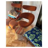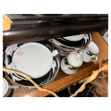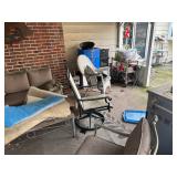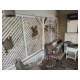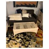 FURNITURE: MCM Mid Century Modern chairs, Gorgeous white leather couches & chair, Stokke gravity designer chair, 9 Pc. glass dining room table set (expandable), Black lacquer china display cabinet, Asian cabinet, Aluminum & glass end tables, Wicker day bed, Wicker trunk, Bookshelves, Wicker bedroom dresser & end table, Wicker coffee table, Wicker patio furniture, Couch, Sofa, Computer chairs, Unique kitchen stools, Desk lamps, Set of 4 nice black folding chairs, Leather trunk, Shelving units, Storage cabinets, & More!