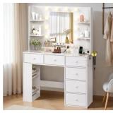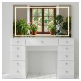 Too many makeup products? The Vanity Desk with Light is your solution. with 6 large drawers, 7 open desktop shelves, and 2 large-capacity open shelves under the desk, it offers ample space to keep your entire collection organized. Create a neat, organized, and efficient vanity space for your daily routine.