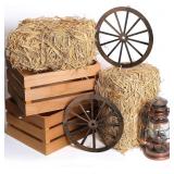 You Will Receive: 2 hay bales, 2 wheels, 2 crates to meet your decorative needs; Straw bales measure 13 x 9 x 6.3 inches, wheels have dimensions of 9.8 x 0.2 inches while the wood crates are 13 x 10.2 x 6.7 inches, allowing for convenient installation. Natural Straw: our natural hay bales are lightweight, applied natural wheat straw from fertile fields, through a gentle drying process, retains its natural lightness and softness, bringing you an all natural experience