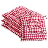 Chair Pad Red and White Plaid Chair Cushions,Set of 4 Outdoor Patio with Ties,16 X 16 Inches Chair Cushion for Indoors and Outdoors Terrace Garden Outdoor