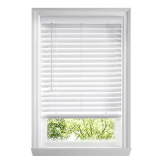 - These blinds offer a classic look that will complement any decor. The room darkening faux wood slats are made from heat and moisture resistant material, making the blinds ideal window treatments for bathrooms, kitchens and garages. The additional insulation to your windows can add energy saving value to your home. For maximum light and privacy control, rotate the slats downward to ensure proper closure.