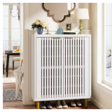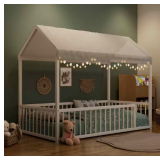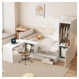 (62) ***5 Boxes*** Full Size Wooden Platform Bed with 6 Drawers, Shelves, Desk and Wardrobe, White Wood Cozy Semi-Enclosed Design Bedroom Use Retreat