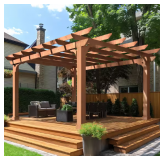 (30) ***3 BOXES*** 12 ft. W x 10 ft. D Cedar Wood Patio Pergola Shade Structure for Outdoor, Brown