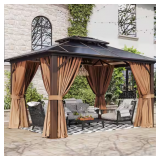 (122) 10 ft. x 12 ft. Hardtop Outdoor Double Roof Gazebo with Netting and Curtains for Backyard