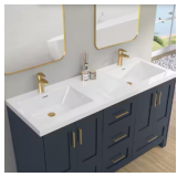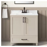 - White ceramic sink and quartz modern vanity top for easy cleaning. Vanity top comes with sink and backsplash separately.