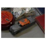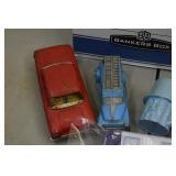 Go To www.bhdauctions.com To Bid Catalog: 1 24 Assorted Vintage Santa Claus Postcards 2 Collegeville Costumes Sea Hag w Original Box 3 Ben Cooper Famous Faces Papa Smurf Halloween Costume 4 Ben Cooper Moving Mouth Mask King Kong Halloween Costume 5 Quantity MAD Magazines 6 2 Metal Lunch Boxes 7 Structo Cement Truck 8 Tonka Pressed Steel Dump Truck 9 Marx Grade Crossing Signal Man w Box 10 Dulux Enamel Advertising Painted Metal Thermometer 11 Dr Pepper Advertising Painted Metal Thermometer 12 Penn Drake Motor Oil Can 13 Esso and Flash Advertising Cans 14 Vintage Champion Spark Plugs w Box 15 1968 Chrysler 300 hardtop dealer promo model car 16 Assorted Comic Books 17 Assorted Comic Books 18 Military and Western Comic Books 19 Aluminum Industries Toy Bus 20 3 Toy Cars 21 Hen On Nest Glass Candy Container 22 Texas Ranger Cap Gun Set 23 CSP Vintage 8 Track Tapes 24 Old Cigarettes and Cigars 25 Assorted Postcards 26 Paper Label Cans and Stogie Box 27 Collection of Old Photographs 28 Vintage Halloween Decorations 29 Oriental Book 30 Assorted Glass Knives 31 Space Guns and Brochures 32 Assorted Vinegar Valentines 33 Vintage Halloween Items 34 Paper Mache Pumpkin, Masks and Noise Makers 35 2 Cast Metal Banks 36 Mailbox and Banks 37 14K Gold Necklace - Approx. Weight 12 Grams 38 14K Gold Bracelet - Approx. Weight 11.1 Grams 39 10K Gold Ring - Approx. Weight 8.73 Grams 40 Silver Ring w/ Green Stones 41 Floral Design Ring 42 2 Sterling Silver Bracelets - Approx. Weight 1.6 Oz. 43 Assorted Sterling Silver Charms - Approx. Weight 1.6 Oz 44 Sterling Silver Bracelets - Approx. Weight 2.6 Oz. 45 24 Assorted Costume Jewelry Rings 46 Corning Pink Trimmed Grill Plates 47 Vintage Pyrex Flamingo Pink Coral Ring Dishes 48 Pyrex 1-quart round covered casserole in the "Amish Butterprint" pattern, originally produced in turquoise between 1957 and 1968 49 Pyrex Snowflake Pattern Baking Dishes 50 Barbie Doll Case w Clothes & Headless Dolls 51 Teen Fashion Doll Case w Clothes & Headless Doll 52 Barbie's Dream House 53 6 Assorted Military Airplane Models 54 5 Assorted Airplane Models 55 Mash & The Serpent Models 56 Marx Tractor Shed w Tractor and Lots of Accessories 57 Coca Cola Zinc Lined Cooler 58 Master Penny or Nickel Coin Op Machine 59 Carved Wood Handled Short Swords 60 US Army Reverse Painted Frame w Photo and More 61 Japanese Robe 62 Fulper American art pottery vessel with a purple drip glaze 63 Cast Iron Horse 64 Model Train Display Accessories 65 Vintage Model Cars 66 Light Up Church for Christmas Display 67 Assorted Christmas Ornaments 68 Advertising Allstate Lubricant Can 69 Whirly Master In Box 70 Nylint Pressed Steel Car 71 Antique Miners Lamp 72 Adlake Lantern 73 Griswold No.2 Mailbox 74 Swank Tank Shaped Lighter 75 Advertising Oil and Grease Cans 76 2 Hires Root Beer Painted Metal Signs 77 Duffee's Cough Syrup Advertising Painted Metal Sign 78 Nichol Kola Painted Metal Advertising Sign 79 ESSO Dealer Paper Poster 80 2 Pieces Cardboard Advertising 81 Emerson and Panasonic Radios 82 3 Cars - 2 Tin and 1 Plastic 83 Tin Planes and Cars 84 Assorted Toy Vehicles 85 Plastic Light Up Santa Claus w Original Box 86 24 Assorted Antique Santa Claus Postcards 87 Light's Golden Jubilee w Box - Reproduction of Edison's First Light Bulb 88 Deming Pumps & Water Systems Painted Metal Sign 89 Normal Portland Cement Advertising Metal Thermometer 90 Braun's Town Talk Bread Metal Thermometer 91 Say Pepsi Please Advertising Metal Thermometer 92 Essolube and Valvoline Advertising Cans 93 3 Gas & Oil Related Cans 94 The Rat Patrol Metal Lunch Box 95 Robin Hood Metal Lunch Box w Thermos 96 Holly Hobbie and Sesame Street Metal Lunch Boxes 97 Assorted Soldiers 98 3 Pieces Plasticville 99 Battery Op Traveling Monkey and Windup Bear 100 Battery Op Tin Litho Army Helicopter 101 3 Cast Metal Cap Guns 102 Sports Related Paper Items 103 Assorted Toy Vehicles 104 New Old Stock Christmas Cards - Griffith Motor Sales 105 Coca Cola Bottle Opener 106 5 Airplane Models 107 6 Airplane Models 108 5 Airplane Models 109 14K Gold Chain - Approx. Weight 1.7 Grams 110 14K Gold Bracelet - Approx. Weight 7.12 Grams 111 14K Gold Ring - Approx. Weight 4.57 Grams 112 Sterling Silver Ring 113 Sterling Silver Ring 114 Assorted Sterling Silver Charms - Approx. Weight 2.9 Oz 115 Sterling Silver Charm Bracelets - Approx. Weight 2.2 Oz. 116 Sterling Silver Pins and Clip - Approx. Weight 1.2 Oz. 117 24 Assorted Costume Jewelry Rings 118 Set of 3 Nesting Pyrex Pink Mixing Bowls 119 3 Pyrex Lidded Dishes 120 Pyrex refrigerator dishes in the "Amish Butterprint" pattern, specifically model 503. 121 Pyrex Amish Butterprint Mixing Bowl 122 Assorted Barbie Dolls and Clothes 123 Doll and Clothes 124 Assorted Barbie Doll Clothing 125 Antique 3 Doz Metal Egg Crate 126 2 Metal PA 1940 & 41 Hunting Tags 127 Assorted Christmas Ornaments 128 Assorted Christmas Ornaments 129 Greeting Cards 2 Drawer Bin 130 GI Joe & Johnny West Dolls w Clothing 131 Coin Operated Gum Ball Machine 132 Huffman Oil Bottle w Spout 133 Mail Slot and Unusual Door Knob 134 4 Doz Metal Egg Crate 135 Spotlight ? 136 Coca Cola Zinc Lined Cooler 137 Small Lantern - Miners? 138 Cast Brass Crescent Plaque 139 Brass Carbide Miners Lantern 140 Assorted Padlocks and Door Knob 141 6 Drawer Clarks ONT Spool Cabinet 142 5 Drawer Small Stand / Cabinet 143 Brass Hose Nozzle 144 Brass Nozzle, Clever and More 145 14K Gold Necklace - Approx. Weight 14 Grams 146 Scrap 10K Gold - Approx. Weight 5.31 Grams 147 14K Gold Cross Charm - Approx. Weight 4.7 Grams 148 Pair 14K Gold Earrings - Approx. Weight 4.8 Grams 149 14K Gold Cross and Chain - Approx. Weight 5.36 Grams 150 Coca Cola Co Wood Keg w Partial Paper Label 151 Vintage Christmas Ornaments 152 Assorted Christmas Ornaments 153 Box Lot Children's Items 154 Durable Toy Military Poosh Em Up Game 155 William Fud Ouija Game 156 Safe T Dart and Fisherman's Luck Games 157 Educational Board 158 Box Lot Electrical Items 159 Smith Corona Vintage Typewriter 160 2 Dolls In Cas