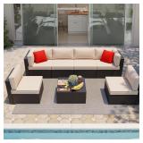 - Reinforced Steel & Hand-Woven Rattan : Built for durability. Features a widened, powder-coated steel frame that supports up to 810 lbs (270 lbs per seat). The hand-woven gray PE wicker is UV-resistant and weather-proof, ensuring no cracking or fading in the sun.