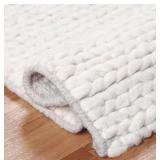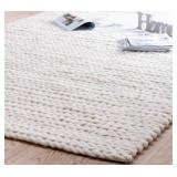 FRELISH DECOR Wool Cotton Area Rug for Living Room and Bedroom, 9'x12' Handwoven Braided Chunky Knit Cable Rugs, Farmhouse Contemporary Area Rug: Wool Ivory Premium