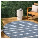JONATHAN Y Berber Stripe Indoor Outdoor Round Area Rug 6 Ft Blue/Ivory, Colonia for Backyard, Patio, Porch, Easy-Cleaning, High Traffic, Pet-Friendly, Non-Shedding (SMB125C-6R)