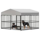 Large Outdoor Dog Kennel, Heavy Duty Dog Cage with Roof, Dog Kennel Galvanized Iron Dog House with Safety Locks,UV & Water Resistant Proof Cover, for Garden Backyard Black (10x10x6FT)