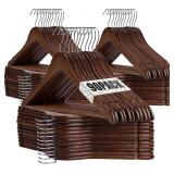 Wooden Hangers 90 Pack, Wooden Clothes Hanger for Daily Used, Heavy Duty Wood Hangers with Pant Bar & Precisely Cut Notches, Premium Hanger for Heavy Coats, Shirts, Suits, Dresses (Walnut)