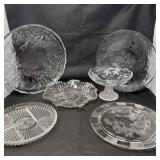 Lot #54 Assorted Clear Glass Serving Bowls & Plates, Floral & Ribbed Patterns