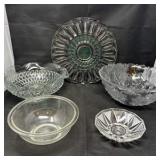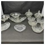 Lot #30 Vintage Pressed Glass Dish Lot, Clear Crystal Bowls, Candy Dishes, Serving Pieces (Multiple Pieces)