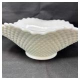 Lot #56 Vintage Milk Glass Hobnail Bowl, Scalloped Edge Serving Dish