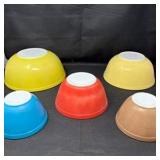 Lot #58 Vintage Pyrex Mixing Bowl Set, Nesting Bowls, Yellow, Red, Blue & Tan