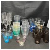 Lot #61 Mixed Drinkware Lot, Champagne Flutes, Plastic Tumblers, Shot Glasses & Beer Glasses