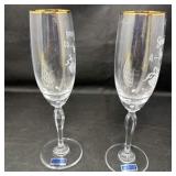 Lot #62 Waterford Marquis Champagne Flutes, Gold Rim Etched Glasses (Set)