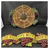 Lot #67 Wicker Serving Tray & Live Well Love Much Laugh Often Wall Decor Set