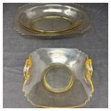 Lot #69 Vintage Amber Glass Serving Tray & Plates, Gold Trim Set