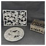 Lot #71 Vintage Metal Trivet Set & Decorative Napkin Holder Basket Lot