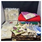 Lot #73 Large Linen & Kitchen Textile Lot, Tablecloths, Curtains, Pot Holders & More