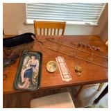 Lot #79 Mixed Vintage Wall Decor Lot, Metal Rack, Thermometers, Trays & More