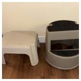 Lot #130 Modern Plastic Step Stool and Rolling Storage Side Table Set