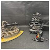 Lot #134 Vintage Cast Iron Mini Stove With Sad Iron and Trivets