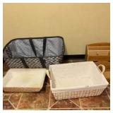Lot #137 Mixed Storage Organizer Lot - Wicker, Baskets, Bamboo Desk Organizer, Fabric Bin