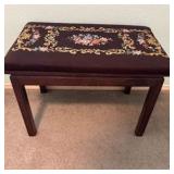 Lot #142 Upholstered Wooden Bench w/Floral Needlepoint Top 17"x25.5"x15"