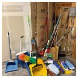 Lot #165 Mixed Cleaning Supplies Lot with Brooms, Dustpans, and Mop Accessories