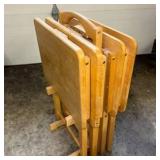 Lot #166 Set of 4 Folding Wooden TV Tray Tables with Stand