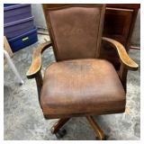 Lot #174 Vintage Swivel Office Chair with Wood Frame and Leather Seat