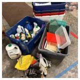 Lot #198 Cleaning Supplies and Household Items Lot with Bins and Gloves