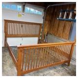Lot #203 - Mission Style King Size Wood Bed Frame with Slatted Headboard and Footboard