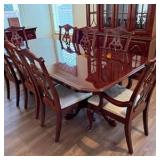 Lot #4 Cherry Wood Dining Table Set with 8 Chairs, Leaves and Pads