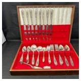 Lot #16 Vintage Monarch Silver Plated Flatware Set, 52 Pieces, with Wooden Case